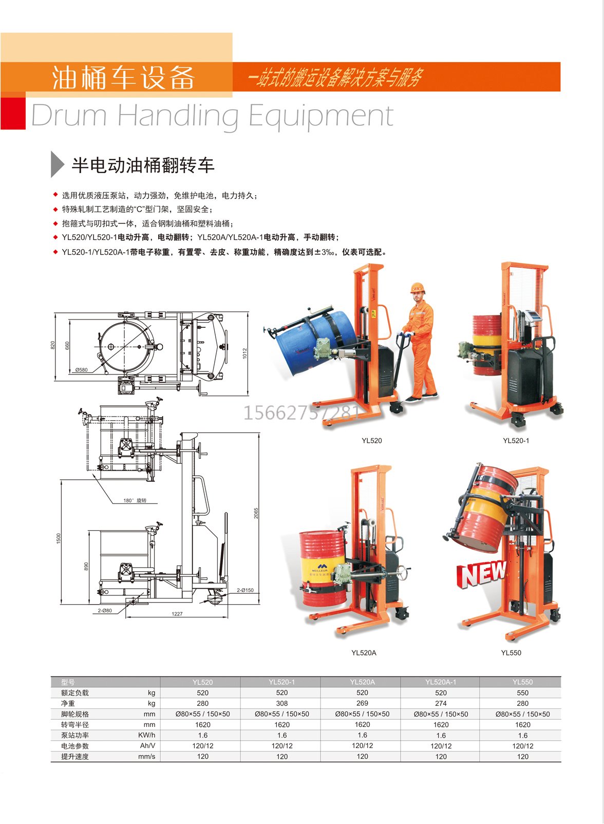 | 電動升降油桶翻轉車/貨號 | 單位 | YL520 | YL520-1 | YL520A | YL520A-1 |
